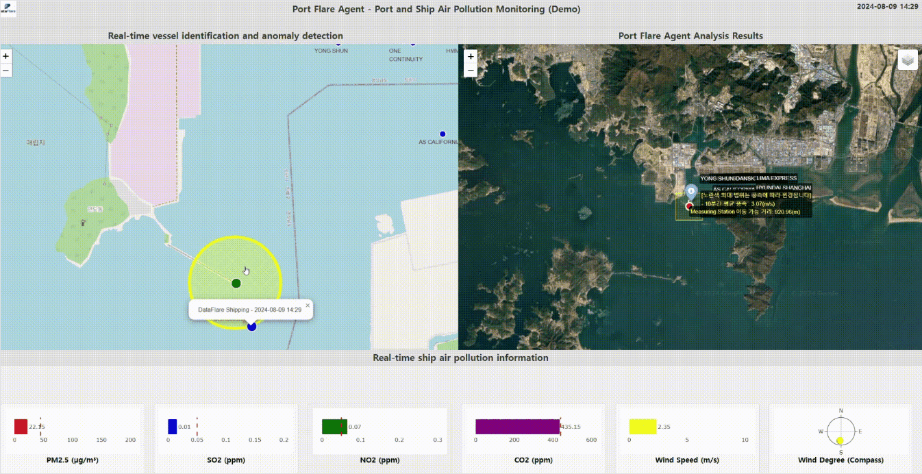 Korea's leading maritime cities put forward AI technologies usable in aquatic environments. Dataflare, which joined the Busan integrated pavilion, unveiled technology that measures ships' real-time carbon emissions using AI. By combining AI-based video analysis with AIS (Automatic Identification System) data, it can estimate and calculate pollutant emissions by vessel without installing separate sensors.